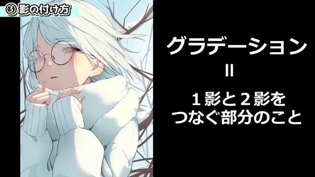 グラデーションは、1影と2影をつなぐ部分のことです。