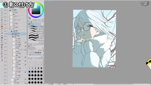 前編と中編で解説した知識を総動員してイラストに影をつけていきます。