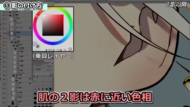肌の2影は赤に近い色を使っています。